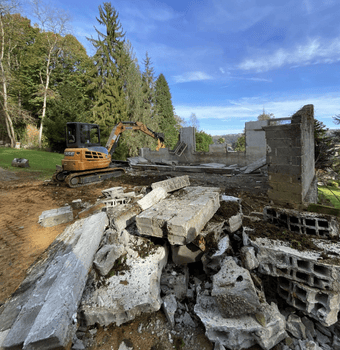 - Démolition totale : nous assurons la destruction intégrale d’un bâtiment, du toit aux fondations, en veillant à une évacuation efficace des gravats.